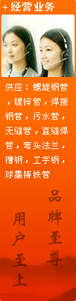 本公司主要生產(chǎn)經(jīng)營:螺旋管,焊接鋼管,無縫管,鍍鋅鋼管,球墨鑄鐵管,直縫鋼管,角鐵,工字鋼,彎頭法蘭等。產(chǎn)品廣泛應(yīng)用于市政工程,供水管道,污水排放,供熱管網(wǎng),煤氣管網(wǎng),煤井礦山,通風管道,建筑工程,鋼結(jié)構(gòu),打樁,橋梁,碼頭等領(lǐng)域。同時本公司配有防腐加工廠,專業(yè)對鋼管進行內(nèi)外壁防腐加工,鋼管外壁主要有三油兩布,五油三布,環(huán)氧煤瀝青及環(huán)氧樹脂漆以及各種高分子涂料。鋼管內(nèi)壁主要有無毒飲用水涂料IPN8710-2B,水泥砂漿及各種環(huán)氧涂料。螺旋鋼管材質(zhì)為:Q235 也可按客戶需要自選材質(zhì)。螺旋鋼管的標準依據(jù)為:SY/T5037標準生產(chǎn)和檢驗。定尺長度通常為:12000mm,也可以生產(chǎn)不同長度的管材。